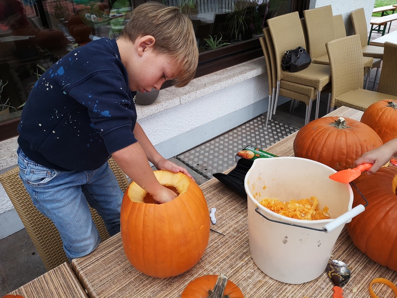 Auch in diesem Jahr wurden wieder eifrig Kürbisse ausgehöhlt und mit gruseligen Gesichtern verziert.