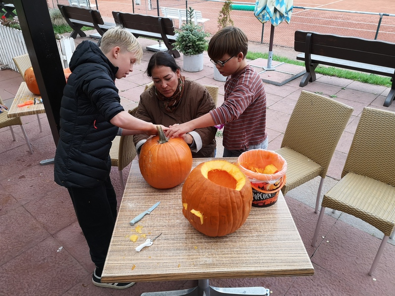 Bei schönstem Wetter traf sich Sonntagnachmittag eine kleine Gruppe unserer Tkk- Kids zum Kürbisschnitzen.